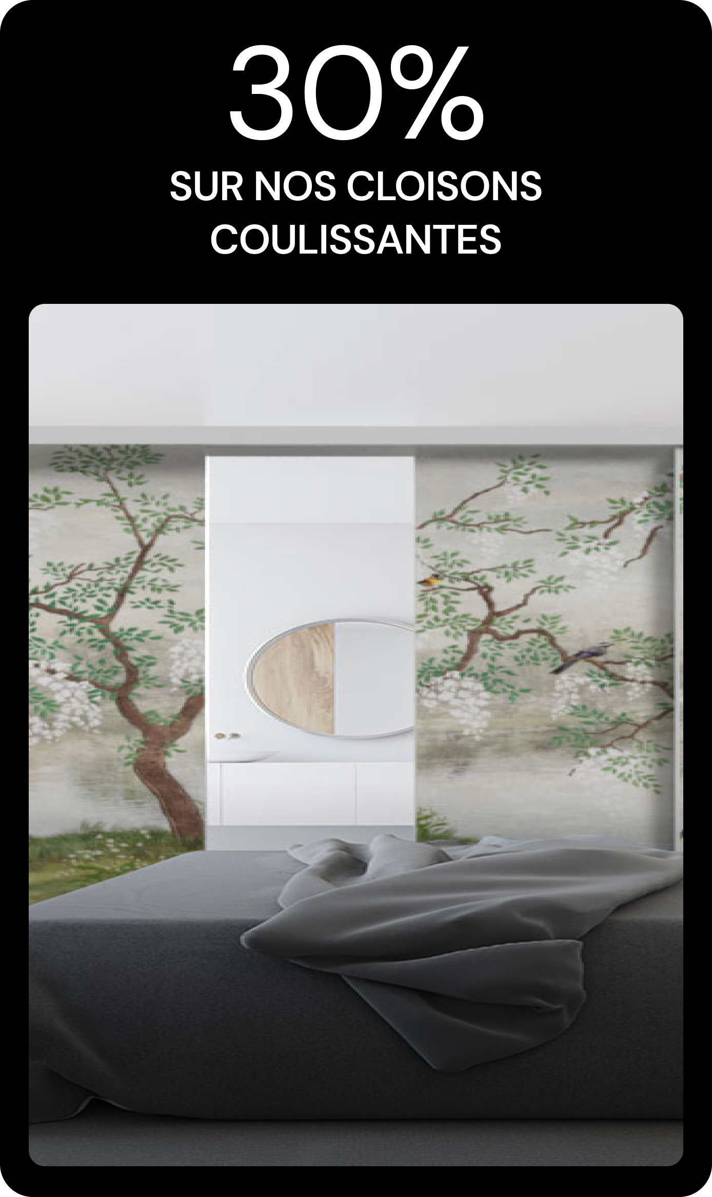 Grâce à notre fabrication 100 % sur mesure, chaque porte de placard coulissante, cloison coulissante ou cloison amovible Tisalia s'adapte à vos dimensions et à vos envies. En aluminium léger et toile tendue, nos créations deviennent une véritable toile d'expression : personnalisez votre intérieur et faites évoluer vos espaces au rythme de vos inspirations.